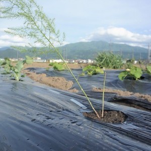 全体的に成長してきました。アスパラガスの芽が生えました!アスパラガスの苗3つのうちのひとつが